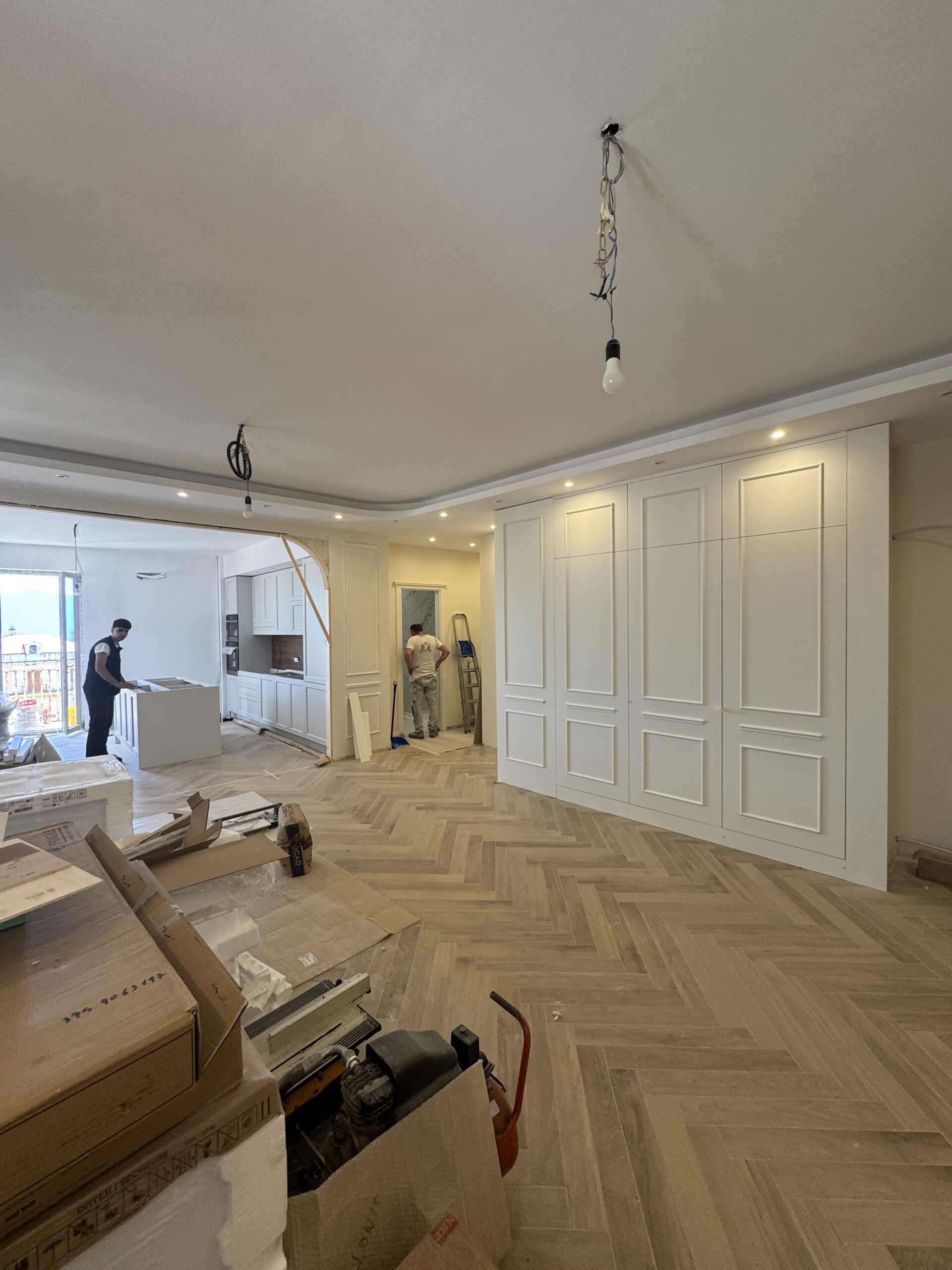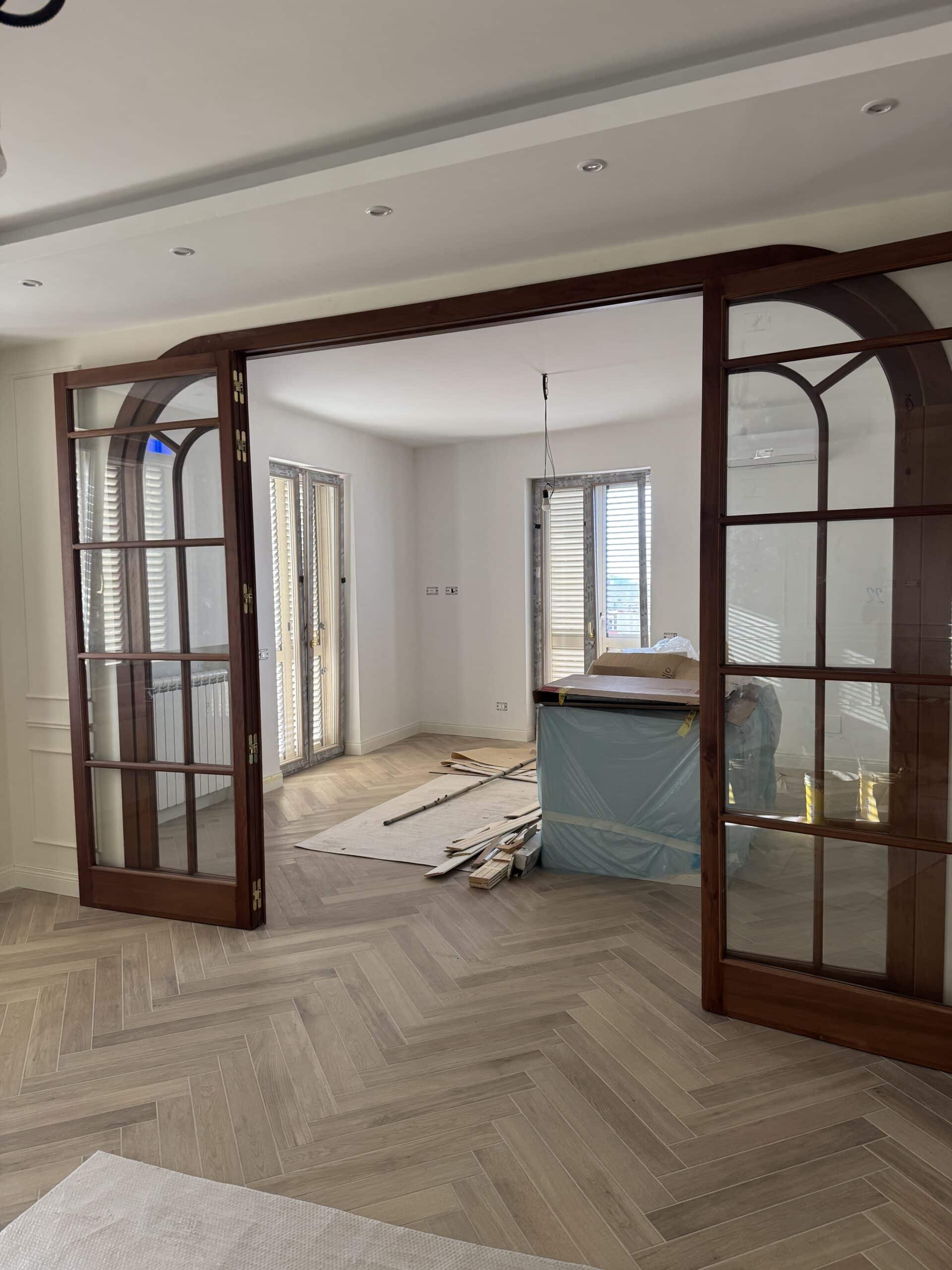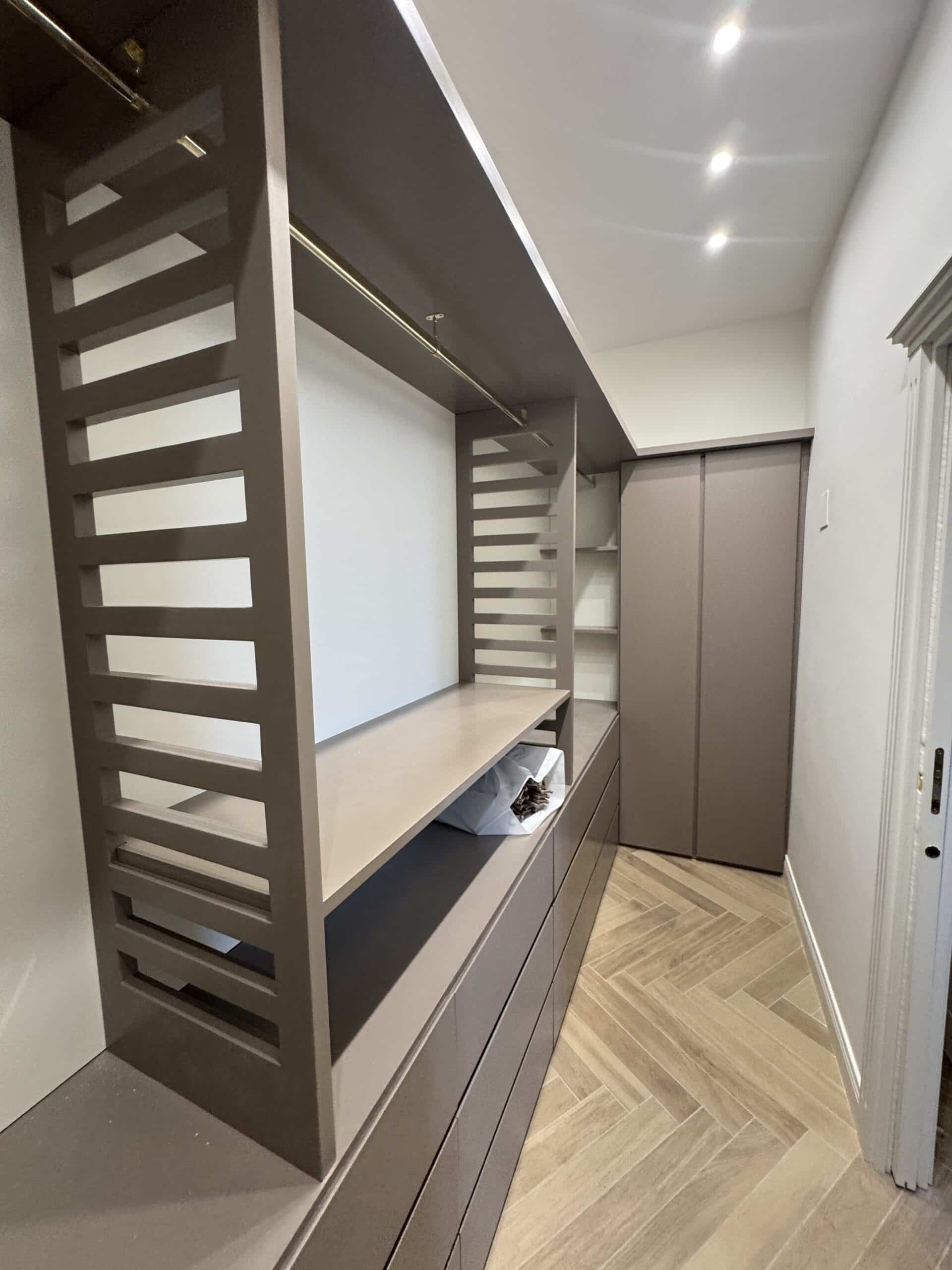 Intervento chiavi in mano con progettazione completa e realizzazione di falegnameria artigianale personalizzata.